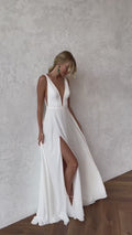 Schlichte tiefe V-Ausschnitt Spaghettiträger Seitenschlitz Chiffon Brautkleider Elegante rückenfreie A-Linie Brautkleider Vestidos De Novia
