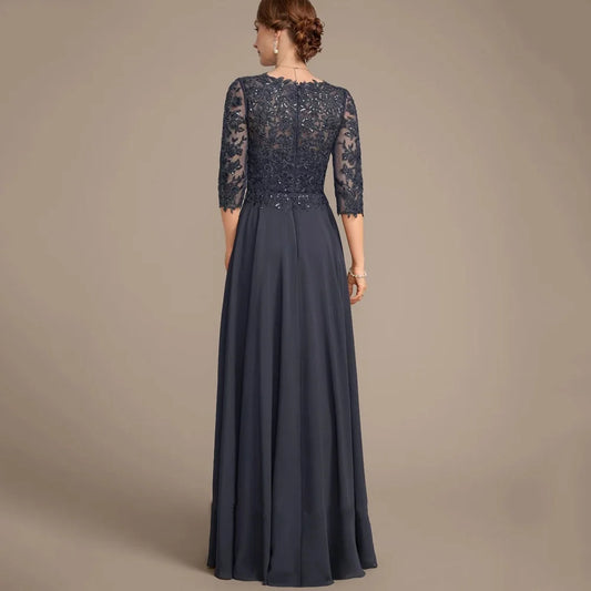 Vestidos elegantes de corte A para madres para bodas, vestidos de noche de encaje con escote redondo, vestido de fiesta de boda con ilusión de gasa فستان حفلات الزفاف