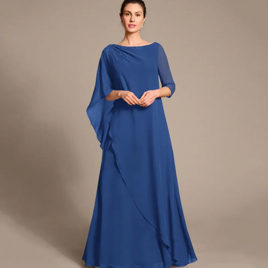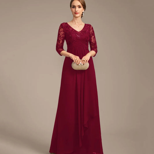 Vestidos de fiesta de boda con cuello en V para mujer, vestidos de madre de la novia, corte A, gasa, largo hasta el suelo