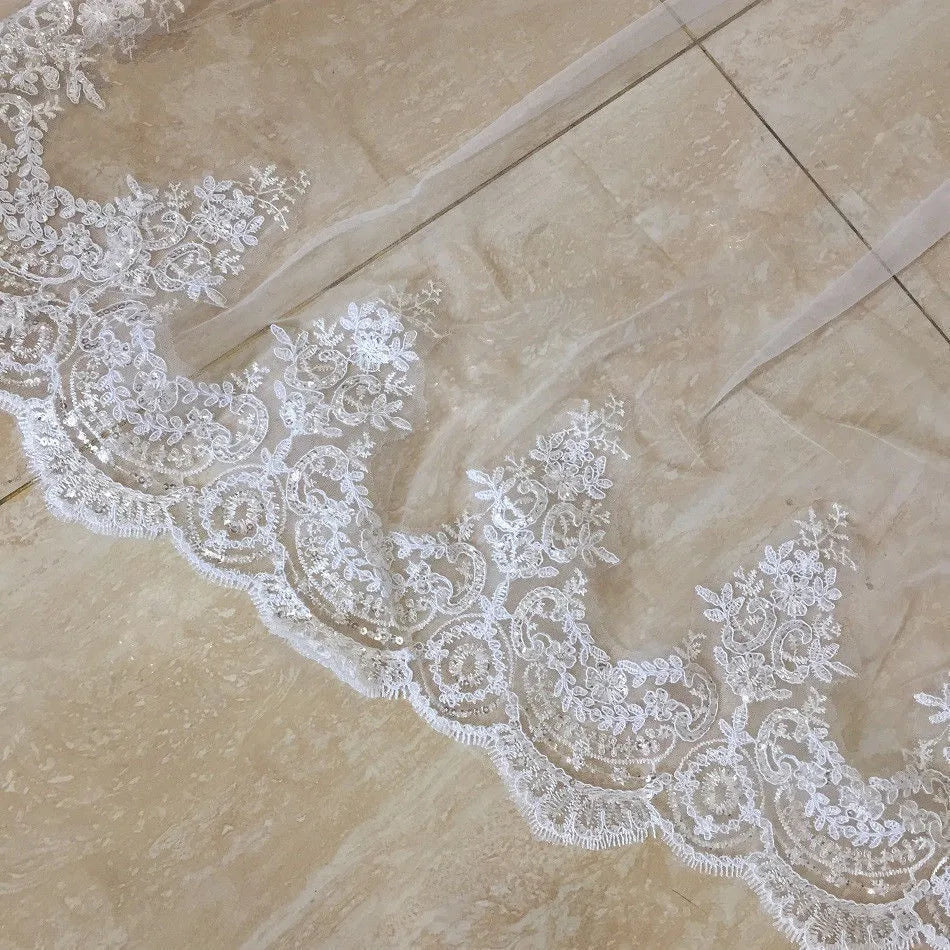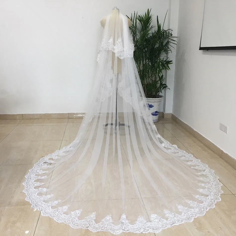 2 Layer Cathedral Wedding Veil 3m Long Lace Bridal Veil with Comb Elegant White Bridal Accessory