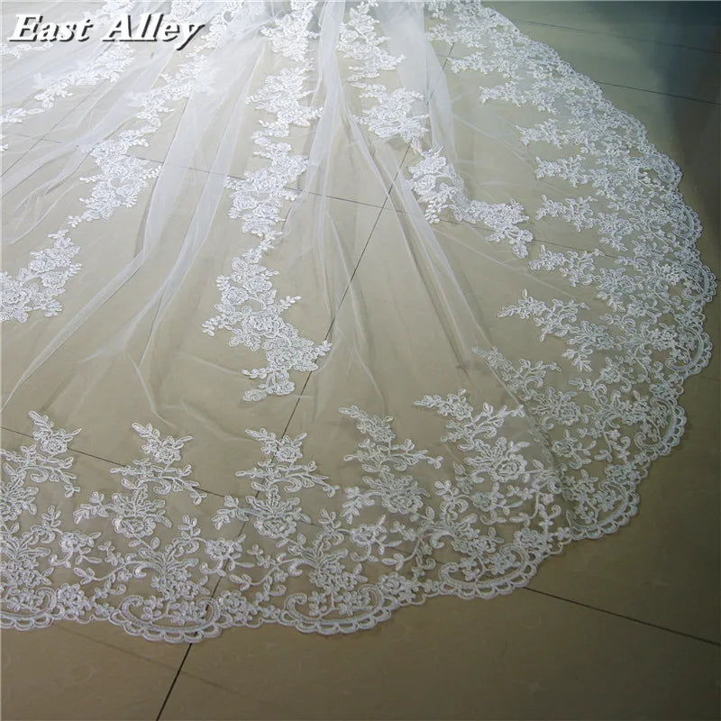 3M Long Lace Applique Wedding Veil 2.8M Wide Cathedral Bridal Veil Wedding Accessories Metal Comb