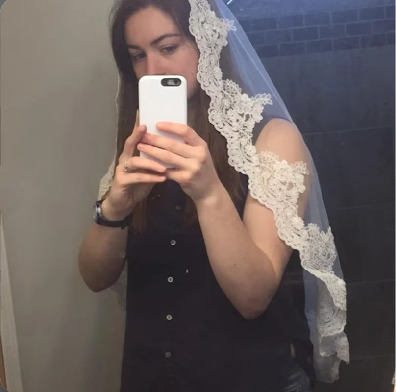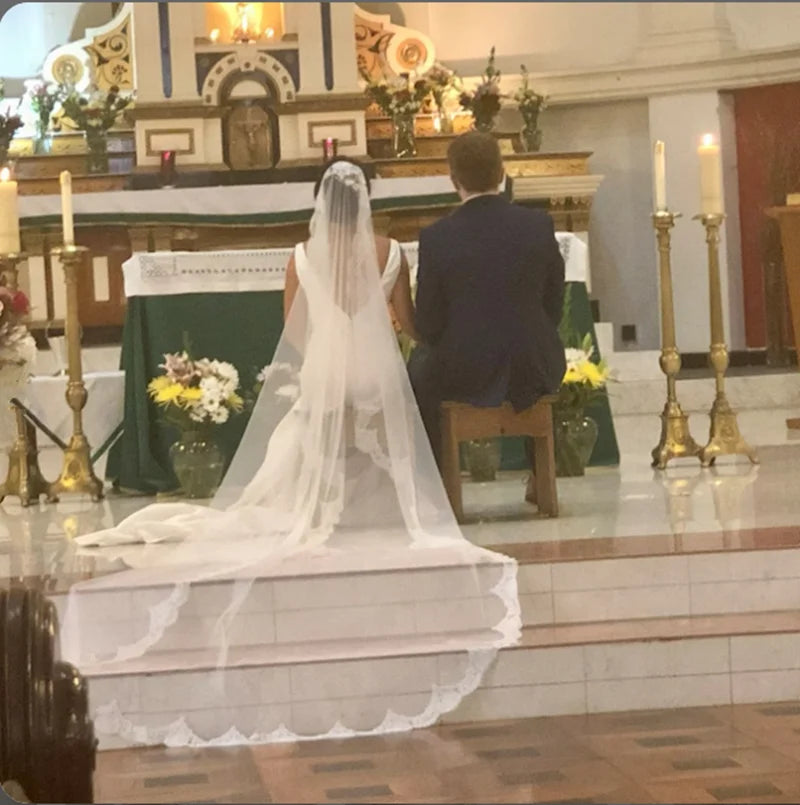 Bridal Mantilla Lace Veil Cathedral Length Wedding Veil - Elegant Bridal Accessories