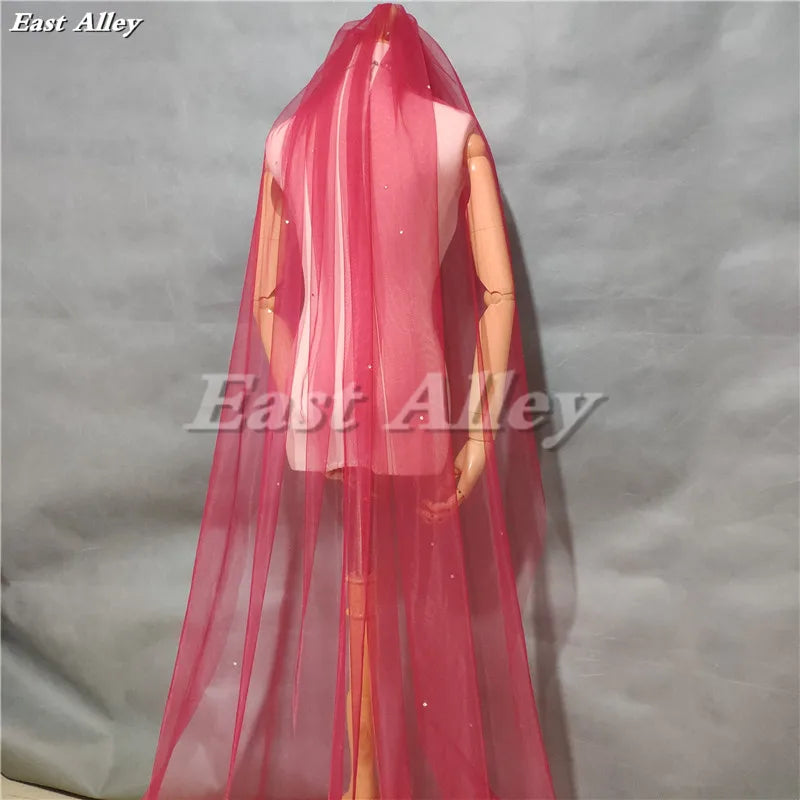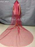 Burgundy Color Scattered Crystal Wedding Veil 3 Meter Bridal Veil Long Veil Cut Edge