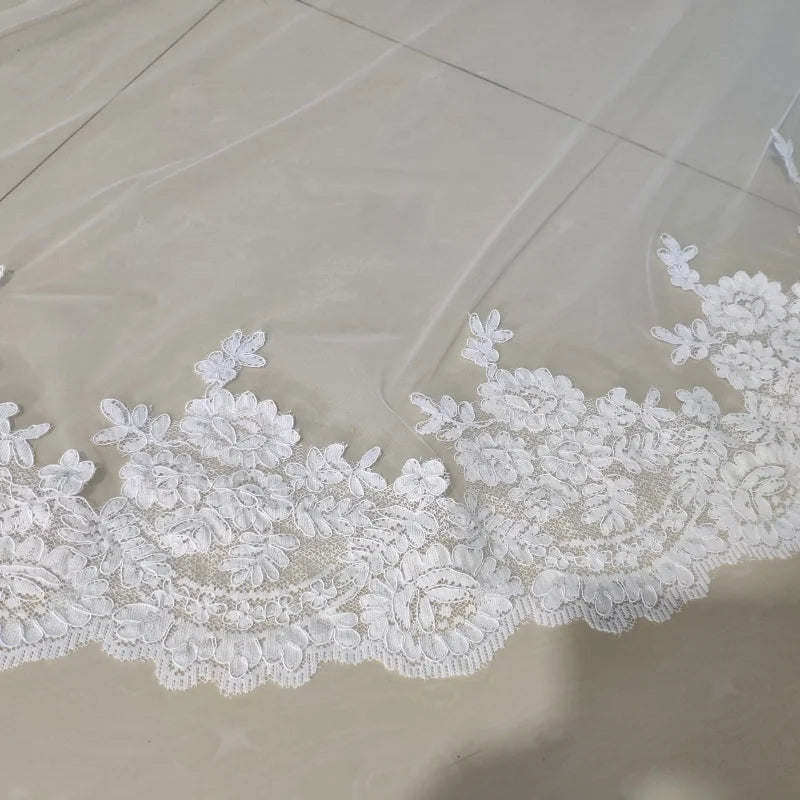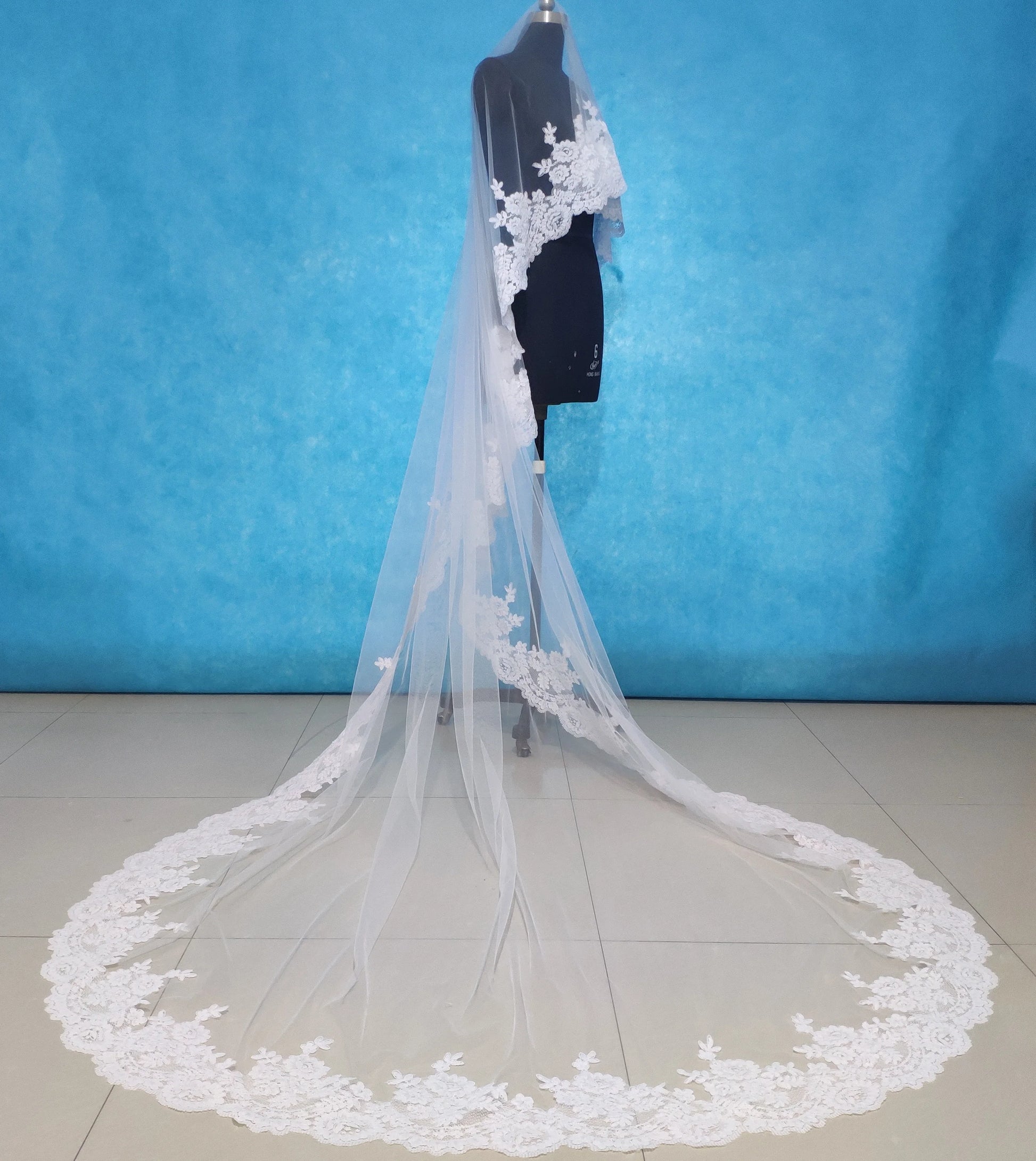New France Lace Wedding Veil One layer 3 M Bridal Veil Long Lace Veil no Comb
