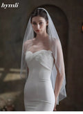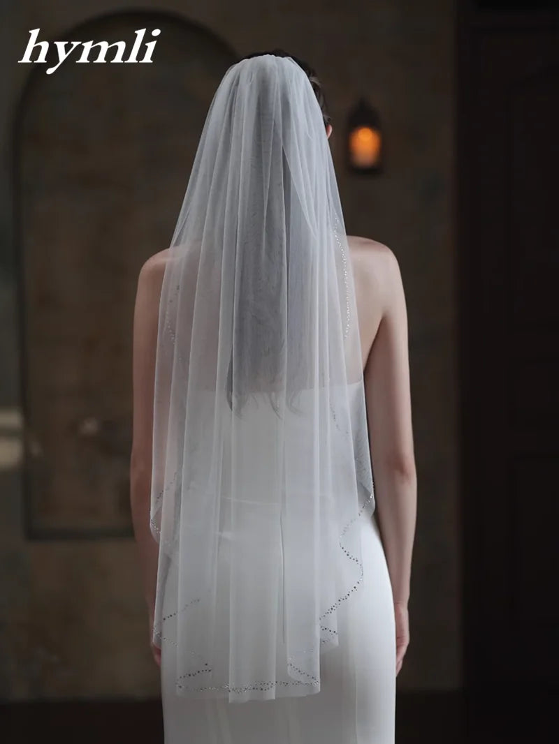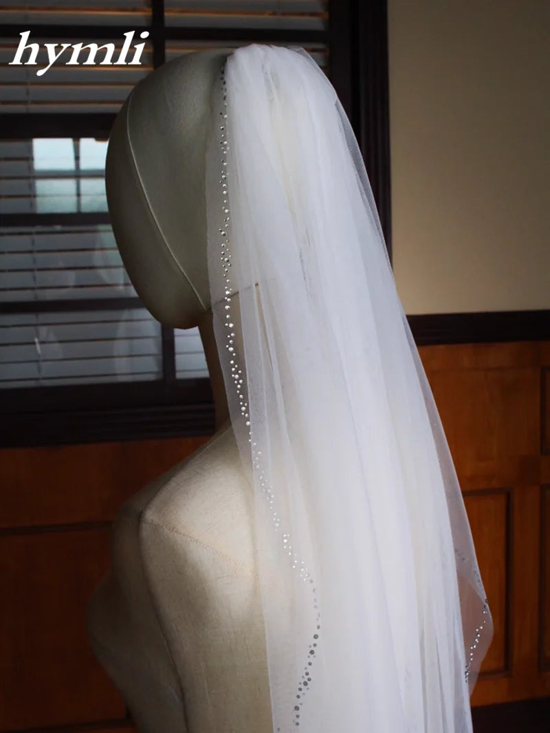 New Style 1 Tier Fingertip length Wedding Veil Tulle Crystal Bridal Veil Cut Edge