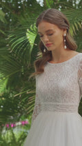 Vestidos de novia bohemios elegantes de lujo, formales, de corte A, sexys, con apliques, cuello redondo, manga larga, princesa, sin espalda, vestidos de novia de tul