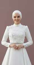 High Neck Muslim Wedding Dress Modest Elegant Satin Gown