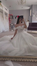 Robe de mariée élégante en tulle, épaules dénudées, ligne A, fleurs 3D, robe de mariée, dos nu, robe de princesse