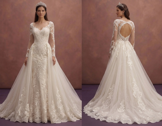 Romantic Lace Wedding Dress with Detachable Train – 2-in-1 for Church Ceremonies