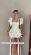 Abito da sposa corto in raso con maniche a lanterna, semplice, mini, dopo festa, scollo quadrato, nastro, carino, abiti da sposa, su misura