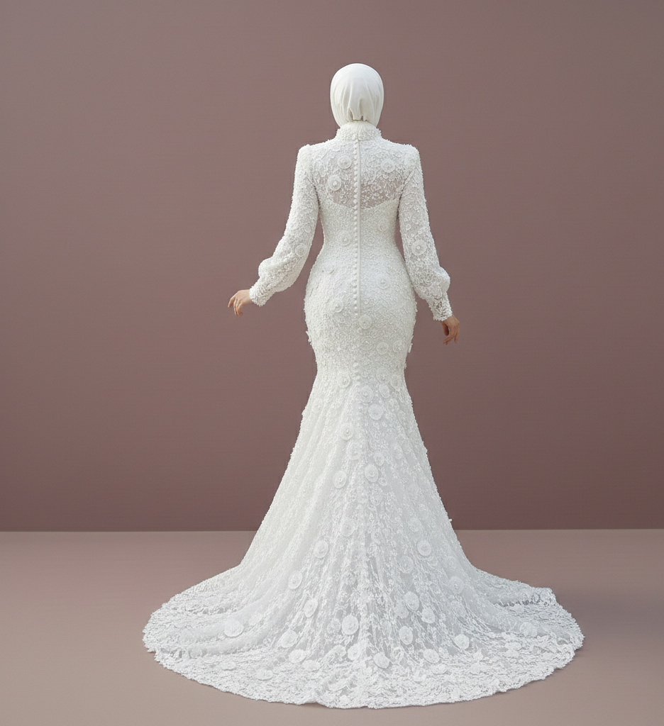 Tea Rose Muslim Wedding Dress Floral Modest Lace Mermaid Wedding Dress