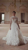 Ball Gown Luxury Wedding Dresses High Neck Long Sleeve Vestido De Novia Embroidery 3D Flowers Robe De Mariee