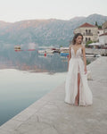 Beach Boho Backless Wedding Dresses Spaghetti Straps Lace Wedding Gowns Side Split V Neck Bride Dress Vestido De Novia