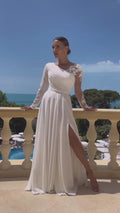Beautiful Dress Unique Wedding Dress Asymmetric Long Sleeve Lace Appliques A-Line Chiffon Floor-Length Bridal Dress Eveing Dress
