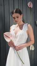 Love Elegant Bow Straps Lace Appliques Chiffon Wedding Dresses Sexy Open Back A-Line V-Neck Sleeveless Floor Length Bridal Gowns