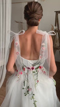 Embroidered Floral colorful Wedding Dresses Sweetheart Backless Bridal Gown Lace Up Fairy Bohemian Wedding Party Gown