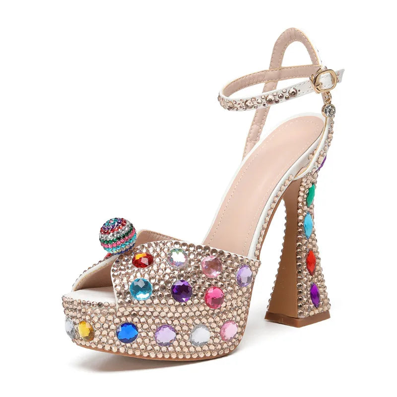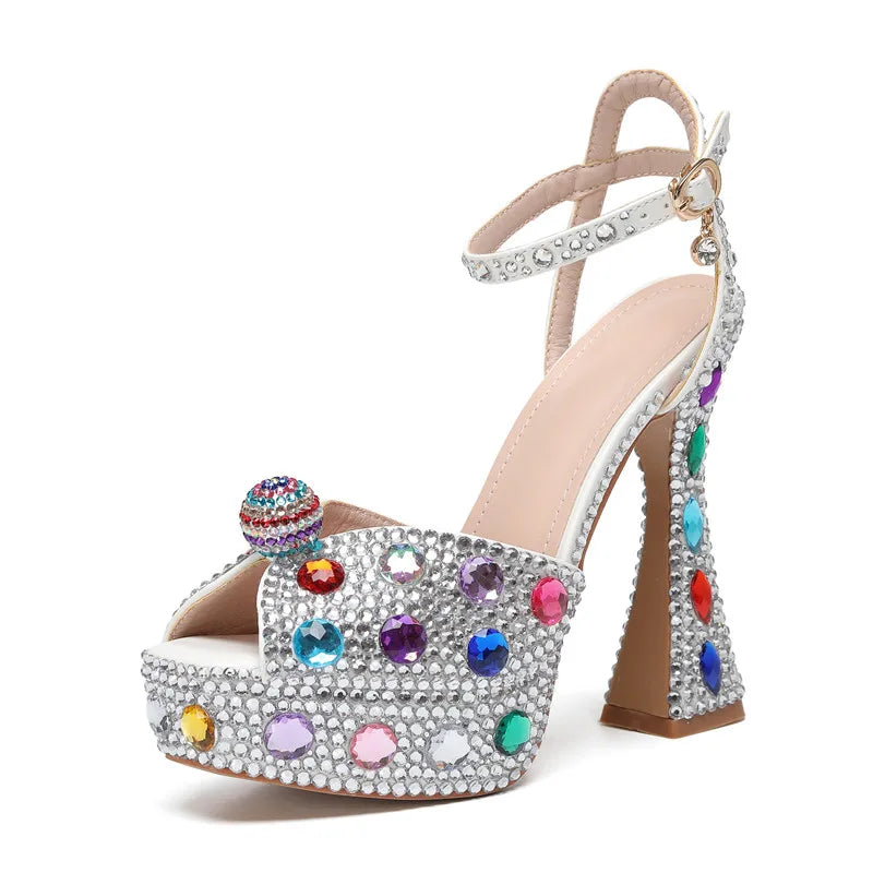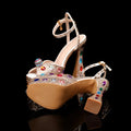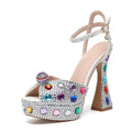Luxury Colorful Rhinestones Women Gladiator Sandals Sexy Ankle Strap Platform Wedges High heels Fashion Summer Party Prom Shoes