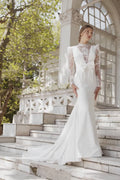 Modest High Collar Long Sleeve Wedding Dress Sparkly Sequins Appliques Bride Robe Elegant Mermaid Bridal Gown Robe De Mariée