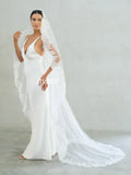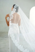 New One Tier Bridal Veil with Eyelash lace Trim Mantilla Lace Veil Soft Wedding Veil