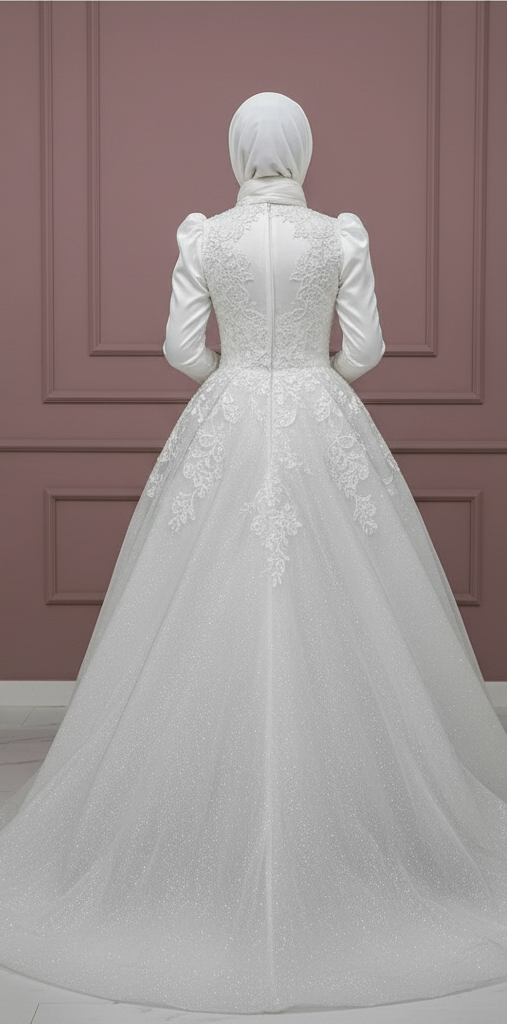 Minimalist Muslim Wedding Dress with Flower Appliques and Long Sleeves