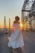 Simples barco pescoço vestidos de casamento fino cetim rendas até apliques uma linha até o chão princesa vestidos de festa vestidos de noiva robe